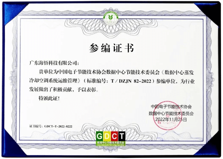 峰會(huì)期間,海悟集團(tuán)被授予《數(shù)據(jù)中心蒸發(fā)冷卻空調(diào)系統(tǒng)運(yùn)維管理》的參編單位證書(shū),共同見(jiàn)證數(shù)據(jù)中心蒸發(fā)冷技術(shù)相關(guān)標(biāo)準(zhǔn)的啟動(dòng)儀式,并參與探討相關(guān)技術(shù)規(guī)范的編制工作。行業(yè)標(biāo)準(zhǔn)制定是產(chǎn)業(yè)發(fā)展的基石,也是建設(shè)制造強(qiáng)國(guó)和網(wǎng)絡(luò)的重要部分。 多年來(lái),海悟積極參與各類數(shù)據(jù)中心基礎(chǔ)設(shè)施及行業(yè)技術(shù)標(biāo)準(zhǔn)的編制,主編或參編近百項(xiàng)國(guó)家標(biāo)準(zhǔn)、行業(yè)標(biāo)準(zhǔn)及團(tuán)體標(biāo)準(zhǔn),為更多行業(yè)樹(shù)立標(biāo)準(zhǔn)規(guī)范,護(hù)航數(shù)據(jù)中心和暖通空調(diào)領(lǐng)域行穩(wěn)致遠(yuǎn)。