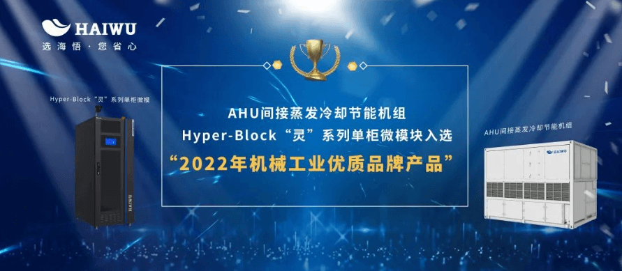 作為數(shù)字能源解決方案領(lǐng)域頭部提供商,海悟積極響應(yīng)國家“雙碳”政策,緊跟節(jié)能減排步伐,在綠色節(jié)能發(fā)展中發(fā)揮帶頭作用。海悟AHU間接蒸發(fā)冷卻節(jié)能機(jī)組和Hyper-Block“靈”系列單柜微模塊憑借高能效、高可靠、智能化的優(yōu)勢入選“2022年機(jī)械工業(yè)優(yōu)質(zhì)品牌產(chǎn)品”。