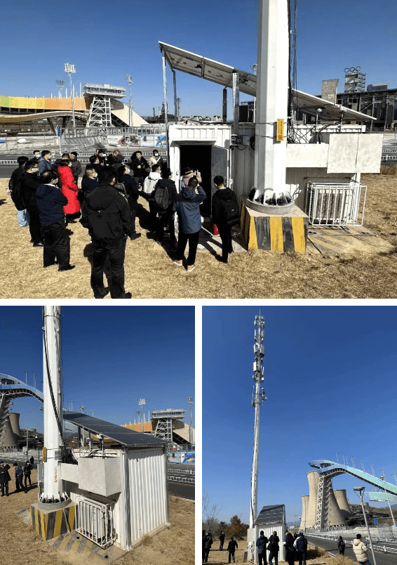 中國鐵塔北京公司的工作人員現(xiàn)場講解首鋼大跳臺通信基站的智能直流疊光系統(tǒng)工作原理及關(guān)鍵技術(shù)。作為新能源應(yīng)用的試點站,光伏發(fā)電量可占到該基站全年能耗的10%。