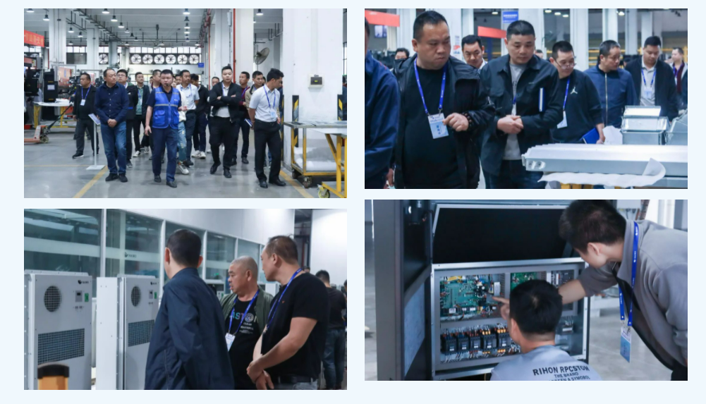 在春色宜人的人間四月,海悟優(yōu)秀服務(wù)商們?cè)趯I(yè)講解員的引領(lǐng)下,先后參觀東莞生產(chǎn)制造基地(包括鈑金、兩器、總裝)、展廳以及樣機(jī)展覽,深入了解海悟空調(diào)的嚴(yán)謹(jǐn)生產(chǎn)工藝與獨(dú)家匠心制造。園區(qū)環(huán)境6S干凈整潔,車間設(shè)備整齊劃一,車間內(nèi)員工朝氣蓬勃,給服務(wù)商們留下了良好印象。