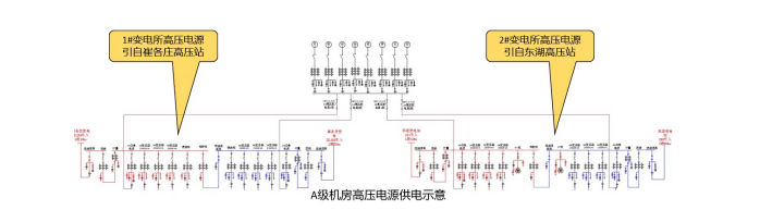 C級(jí)機(jī)房僅需要從同一個(gè)高壓站引兩路電源即可;若C級(jí)機(jī)房改B級(jí)機(jī)房,在有條件的情況下,應(yīng)由不同的高壓站各引一路電源;若C級(jí)機(jī)房改A級(jí)機(jī)房,則必須由不同的高壓站各引一路電源,在一路電源故障時(shí),另一路電源不應(yīng)同時(shí)受到損壞。