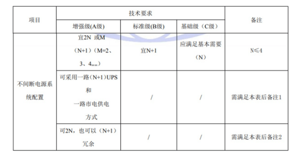 國標(biāo)GB50174-2017《數(shù)據(jù)中心設(shè)計(jì)規(guī)范》中對(duì)于A、B、C三級(jí)數(shù)據(jù)中心不間斷電源系統(tǒng)架構(gòu)的具體要求如下: