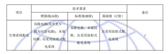 國標(biāo)GB50174-2017《數(shù)據(jù)中心設(shè)計(jì)規(guī)范》中對(duì)于A、B、C三級(jí)數(shù)據(jù)中心空調(diào)系統(tǒng)配電的具體要求如下: