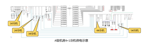 C級(jí)機(jī)房無冷機(jī)末端切換要求;若C級(jí)機(jī)房改B級(jí)、A級(jí)機(jī)房,則部分冷機(jī)需做末端互投,以保證在一個(gè)變電所完全斷電時(shí),另一個(gè)變電所可以帶載滿足機(jī)房冷卻工況的全部冷機(jī)。