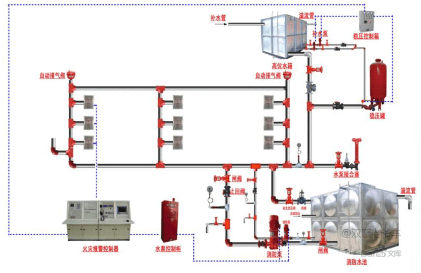 自動(dòng)噴水滅火系統(tǒng)由灑水噴頭、報(bào)警閥組、水流報(bào)警裝置(水流指示器或壓力開關(guān))等組件,以及管道、供水設(shè)施等組成,能在發(fā)生火災(zāi)時(shí)噴水的自動(dòng)滅火系統(tǒng)。該系統(tǒng)主要用于撲救建筑物初期火災(zāi)平時(shí)處于準(zhǔn)工作狀態(tài),當(dāng)設(shè)置場所發(fā)生火災(zāi)時(shí)噴頭或報(bào)警控制裝置探測火災(zāi)信號后立即自動(dòng)啟動(dòng)噴水滅火,具有安全可靠、經(jīng)濟(jì)實(shí)用、滅火成功率高等的優(yōu)點(diǎn)。