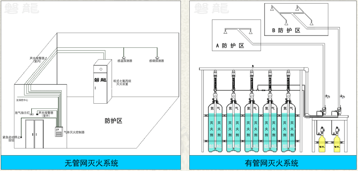 3.氣體滅火劑:以氣體為滅火劑的方式,主要有七氟丙烷(HFC-227ea)氣體滅火系統(tǒng)、IG-541氣體滅火系統(tǒng)等。