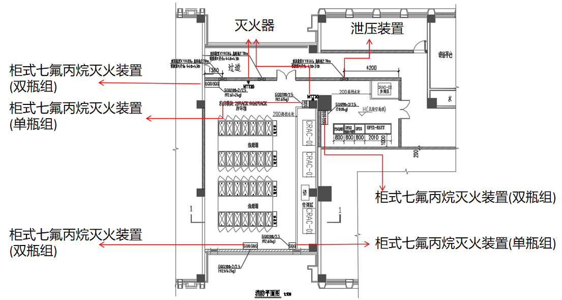 無管網(wǎng)式氣體滅火系統(tǒng)設(shè)計(jì)實(shí)例如下: