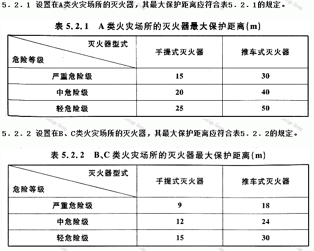 《建筑滅火器配置設(shè)計(jì)規(guī)范》GB50140-2005中關(guān)于滅火器最大保護(hù)距離的規(guī)定如下: