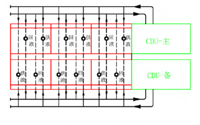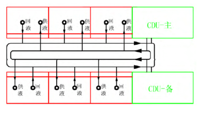 3)將CDU集中布置到一個區(qū)域或者集中到幾個有序區(qū)域,使液冷設(shè)備管路和冷卻水管路有明確的物理分區(qū),一方面可以使各功能區(qū)有序布局,另一方面能夠更加簡潔的實現(xiàn)冷卻水管路和閥門冗余設(shè)計。