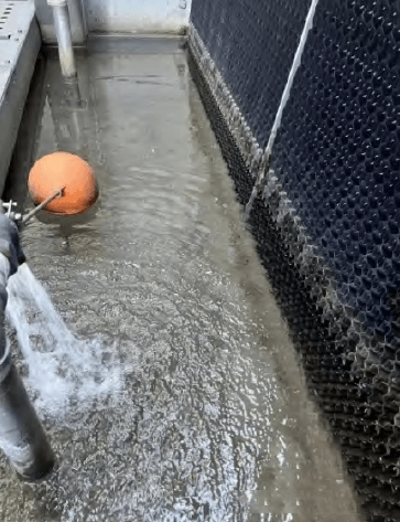 開式塔在常規(guī)冷凍水系統(tǒng)中使用較普遍,優(yōu)點之一價格較低。其次,開式塔系統(tǒng)簡潔,不需要閉式系統(tǒng)的定壓裝置,沒有噴淋泵,無需添加乙二醇防凍,運行維護簡單。且同等工況下設(shè)備功率低,甚至可以選擇一些無風機冷卻塔來搭配運行,可以把PUE降到極致。但開式塔最大的缺點就是循環(huán)水與外界環(huán)境直接接觸,需重點關(guān)注水質(zhì)處理,目前開式塔系統(tǒng)水質(zhì)控制好和壞的案例均存在,一方面是水處理廠家參差不齊的原因,另一方面是碳鋼管道自身在開式系統(tǒng)中容易腐蝕。筆者有幸參與開式塔系統(tǒng)水質(zhì)控制良好的項目,見圖 8水質(zhì)清澈良好。具體措施為采用鍍鋅管道法蘭連接,而非采用碳鋼管道外表面刷防銹漆的方式,采用鍍鋅管道的系統(tǒng),日常運行只需要應對結(jié)垢和夏季藻類細菌滋生的問題,水處理的成本大幅降低。且使用鍍鋅管道造成的成本增加不到管路成本的10%,完全可以從水處理減少的費用中來覆蓋這部分增加。通過如上措施,不但能節(jié)約成本,還能良好的控制水質(zhì),以及減少水處理化學品的使用。