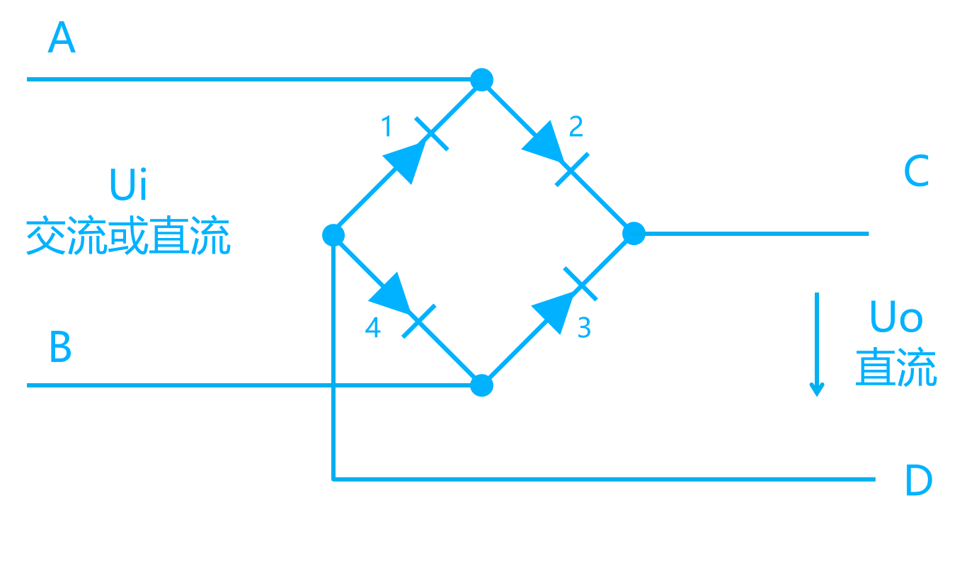 電子信息設(shè)備內(nèi)部各電路是以直流電源進(jìn)行工作的,為此在電子信息設(shè)備內(nèi)部設(shè)計(jì)了一個(gè)電源模塊,無(wú)論供電電源是交流還是直流,經(jīng)過(guò)電源模塊后都變成直流,故大多數(shù)服務(wù)器等電子信息設(shè)備可以接受交流電源,也可以接受直流電源供電,其原理見(jiàn)圖二。圖二是電子信息設(shè)備的電源模塊接受交流或直流電源時(shí)的工作原理。當(dāng)電源模塊輸入交流電時(shí),在交流電的正半周,電流流向是A→2→C→D→4→B;在交流電的負(fù)半周,電流流向是B→3→C→D→1→A,在C和D之間形成直流電源。當(dāng)電源模塊輸入直流電,且A為正極,B為負(fù)極時(shí),電流流向是A→2→C→D→4→B,當(dāng)B為正極,A為負(fù)極時(shí),電流流向是B→3→C→D→1→A,在C和D之間形成直流電源。