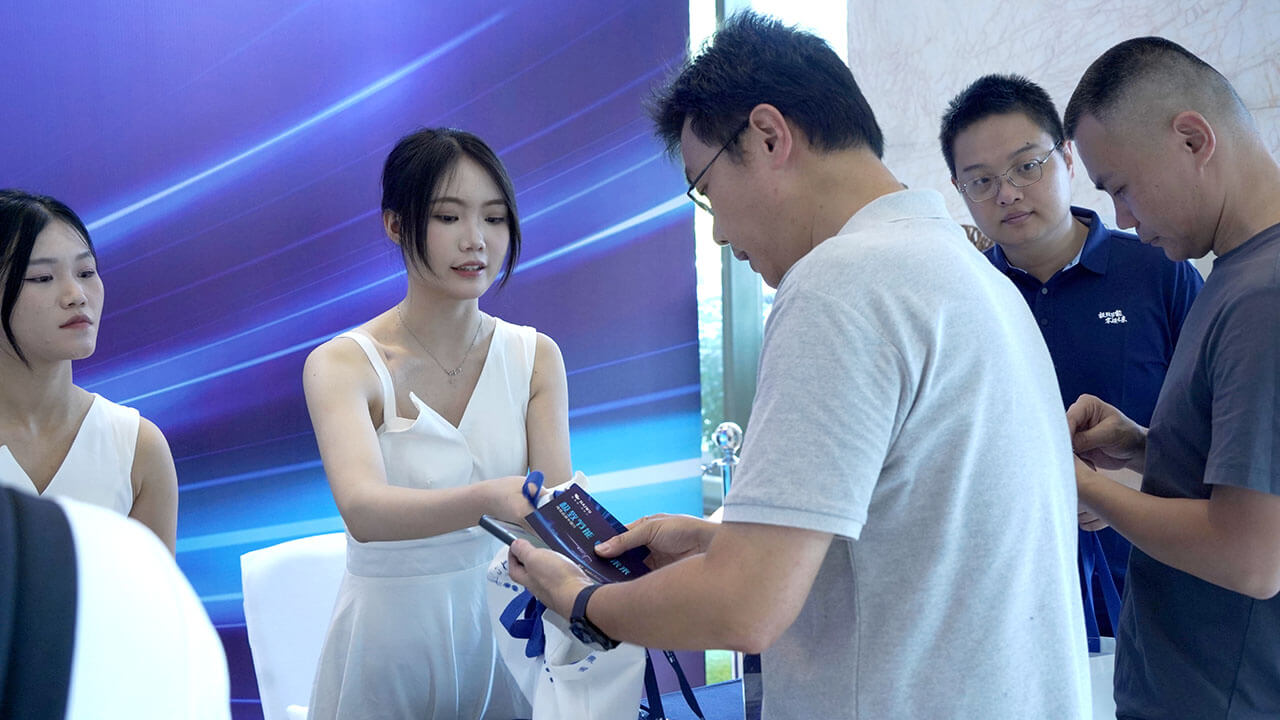 下午兩點,隨著嘉賓們的陸續(xù)抵達,活動正式拉開序幕。簽到區(qū)人頭攢動,每位嘉賓都領(lǐng)取到了精心準備的公司介紹折頁、精美小禮品以及詳盡的數(shù)據(jù)中心解決方案畫冊,現(xiàn)場背景簽名墻更是成為了大家爭相合影留念的熱門地點。展車旁,早已聚集了眾多好奇的參觀者,他們迫不及待地想要一睹海悟集團最新技術(shù)的風(fēng)采。