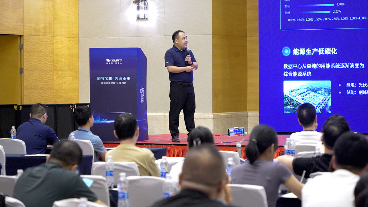 活動還設(shè)置了多場干貨滿滿的分享環(huán)節(jié)。產(chǎn)品中心高層吳曉林深入分析了“雙碳背景下關(guān)鍵基礎(chǔ)設(shè)施能效提升的策略與思考”,為嘉賓們提供了寶貴的思路與建議。而產(chǎn)品經(jīng)理謝恩則揭秘了海悟數(shù)據(jù)中心超低PUE的創(chuàng)新實踐,展示了中大型溫控產(chǎn)品的卓越性能。