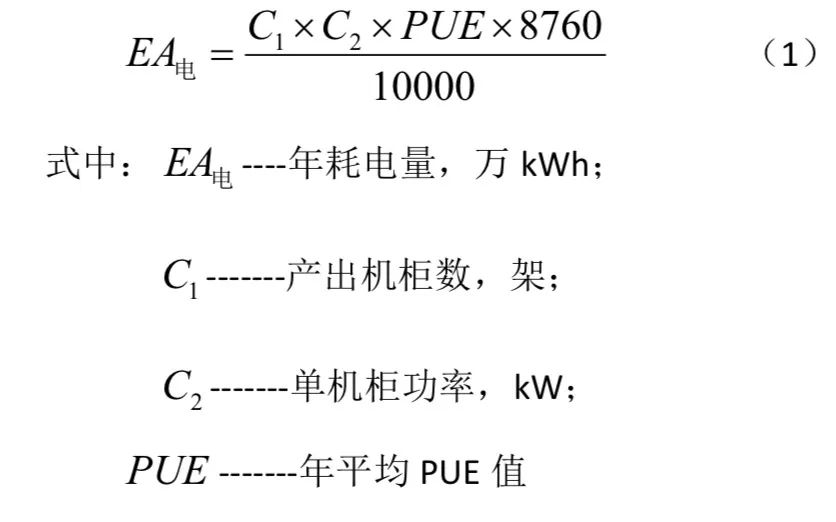 根據(jù)數(shù)據(jù)中心項目產出機柜數(shù)、單機柜功率、年平均PUE 值可求得數(shù)據(jù)中心年耗電量, 計算公式如下: