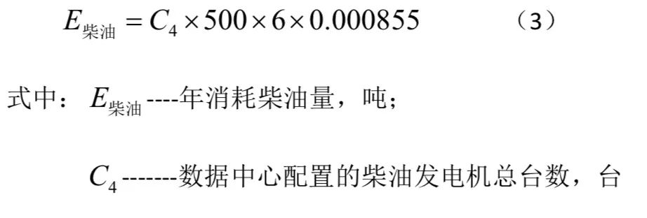 數(shù)據(jù)中心多采用10kV 基本功率為 2000kW 柴油發(fā)電機組,根據(jù)經(jīng)驗值每臺機組每小時 消耗柴油 500升,按每月每臺柴油發(fā)電機保養(yǎng)檢修運行 30 分鐘估算,每臺柴油發(fā)電機每年 運行 6 小時,由此可求出數(shù)據(jù)中心每年柴油消耗量,計算公式如下: