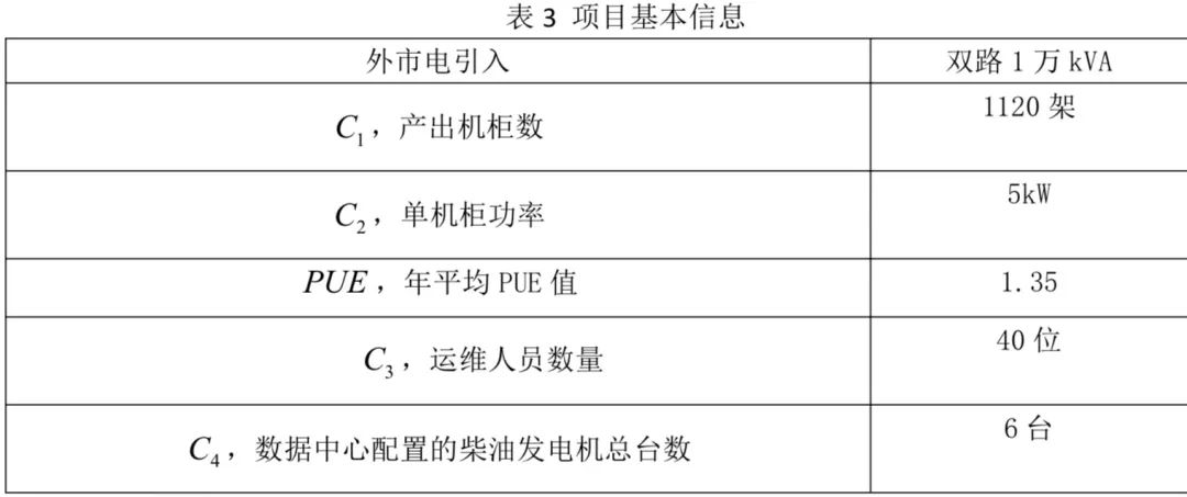 以廣東省某數(shù)據(jù)中心項目情況作為基礎,分別對此項目采用外購電力方案以及天氣發(fā)電方案進行綜合能源消耗計算及碳排放核算,項目基本信息如下: