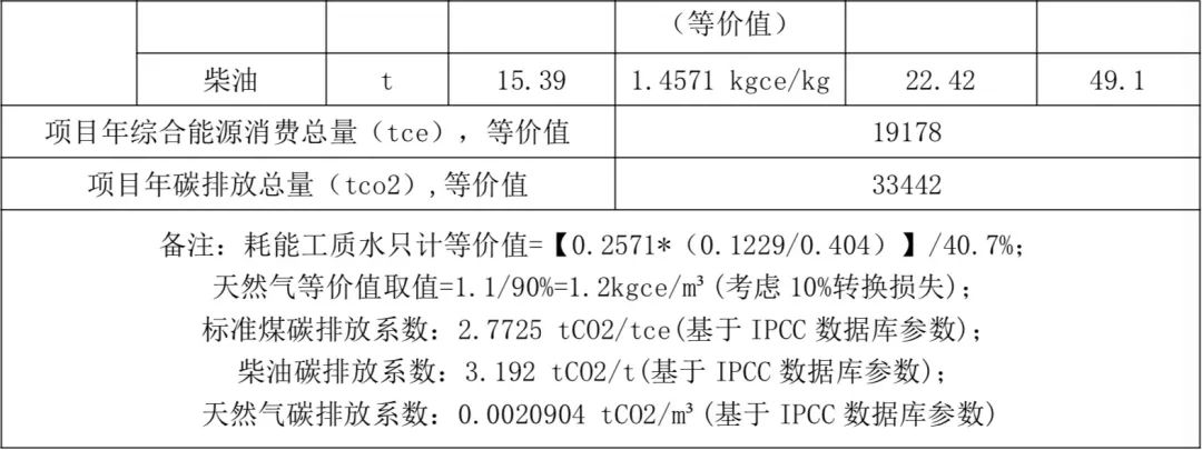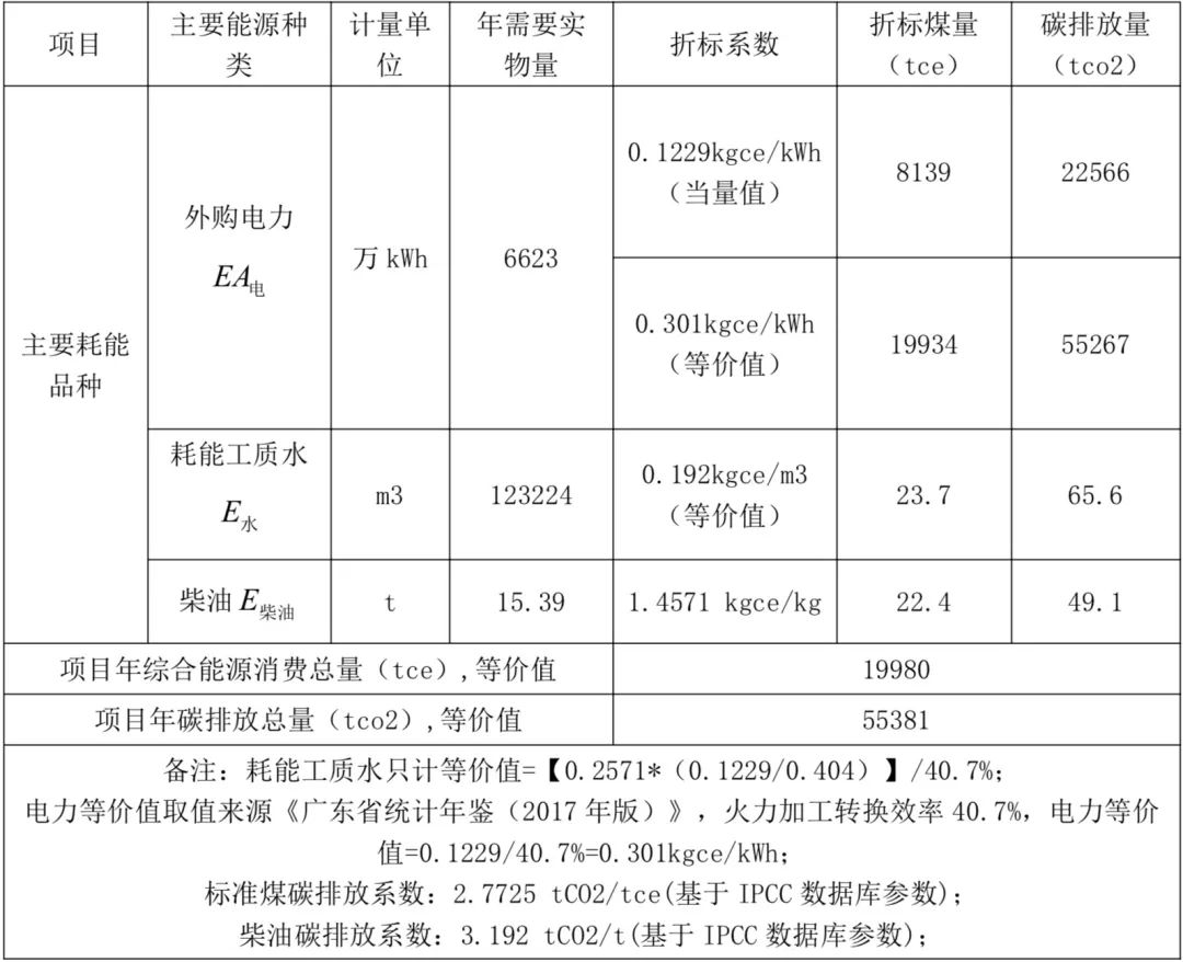 根據(jù)公式 1 至公式 7 對該項目進行綜合能源消耗計算及碳排放核算,計算結果如下: