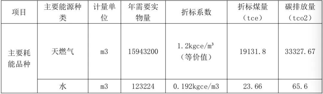 表5 項目綜合能源消耗計算及碳排放核算(天然氣發(fā)電)