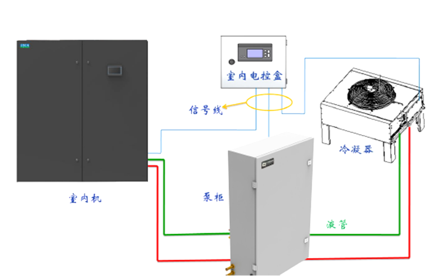 使常規(guī)風冷精密空調(diào)具備氟泵功能; 室外溫度較低時充分利用自然冷源,實現(xiàn)節(jié)能效果;